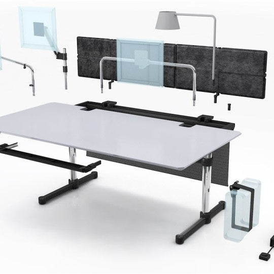USM Kitos table er serie arbeidsbord med hev og senk funksjon. Bordet kommer i et stort antall størrelser og med ulike utforminger. Kitos, Kitos M. Kitos E og Kitos Meeting. Serien kan leveres med ekstrautsyr som integrert skjermholder, USB uttak, strømsortering mm.